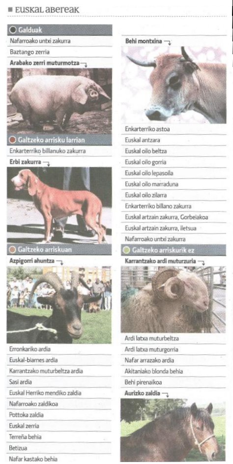 Bertako 35 abere arraza galditzen dira Euskal Herrian ; azken urteetan eginiko lanari eskzer, horietako oso gutxi daude galtzeko arrisku larrian.