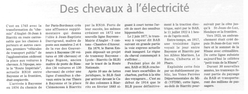 La modernisation du train Bayonne-Saint-Jean-Pied-de-Port Des chevaux à l'électricité Le tram de Bilbo va bon train Des ports en forte mutation La première autoroute maritime depuis Bilbao La complémentarité au goût du jour Les aéroports b[...]