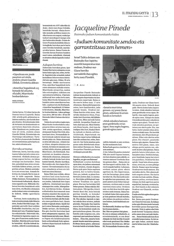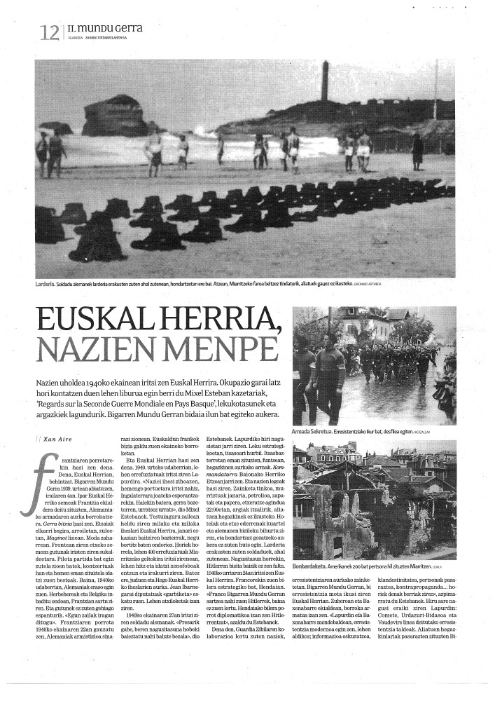 Nazien uholdea 1940ko ekainean iritsi zen Euskal Herrira. Okupazio garai latz hori kontatzen duen lehen liburua egin berri du Mixel Esteban kazetariak, 'Regards sur la seconde guerre mondiale en Pays basque", lekukotasunaek eta argazkiek lagundu[...]